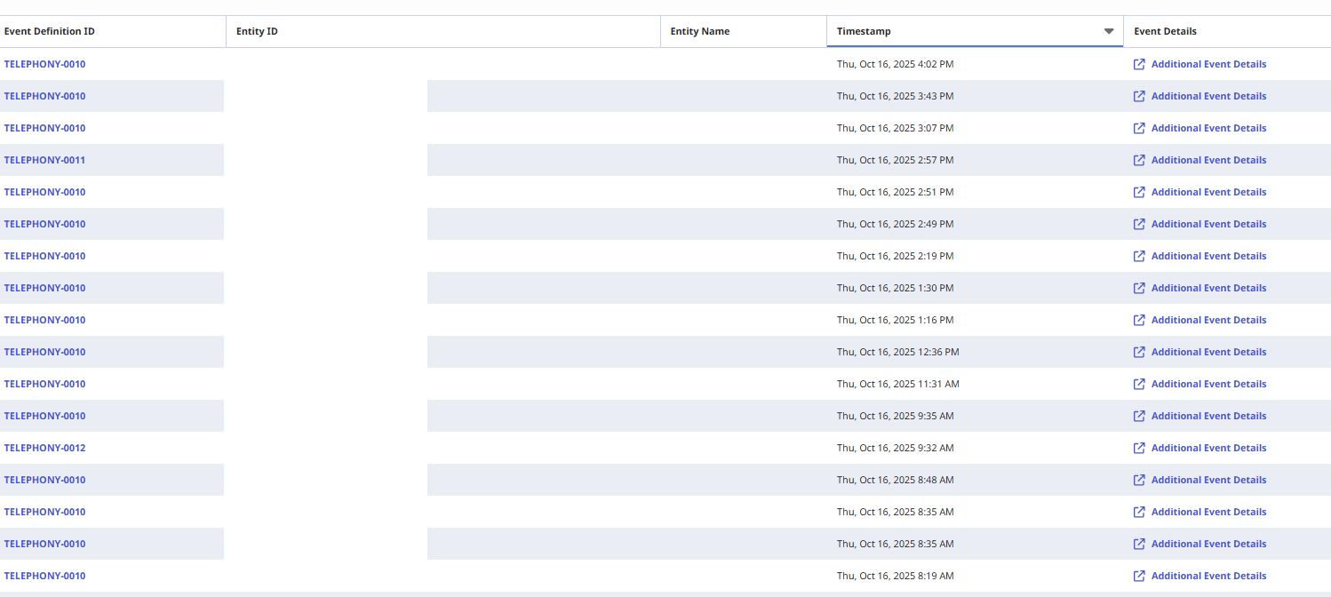 We are a FedRAMP customer and starting last week (09/25/25 to be exact) our Edges (vendor managed) were updated to version 1.0.0.26833 after midnight on 09/25. Starting at around 6:20AM EST, we began receiving Telephony-0010 and Telephony-0011 events for the very first time (we've been on the platform for around 18 months and cannot recall receiving these two specific events until 09/25). We also have a trigger setup to email us when operational events occur. We cannot find an email for previous 6 months of these events occurring.