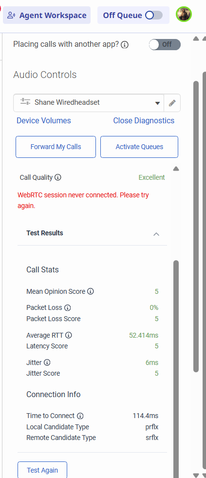 On an affected user/machine, perform an outbound WebRTC call from Genesys Cloud.