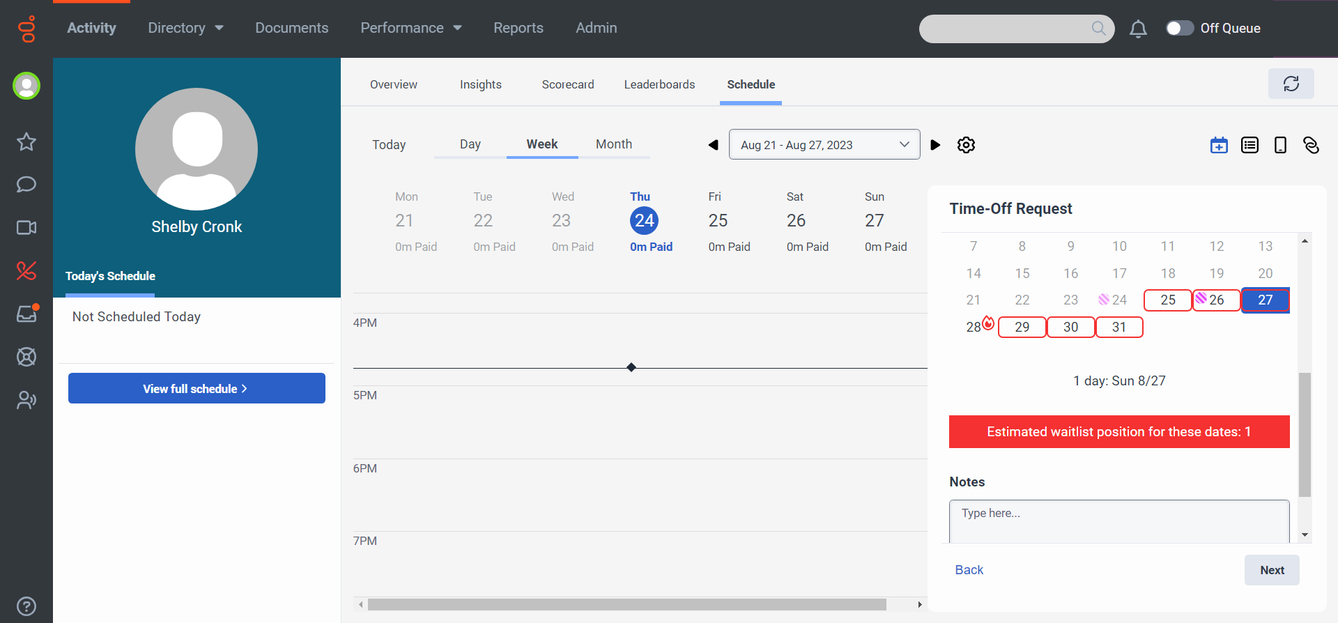 have confirmed that time off limit/plan are set up and in the same management unit; agents are being presented with "your waitlist position will be..." when requesting, but when it reaches the admin, the status and limit are not showing correctly.