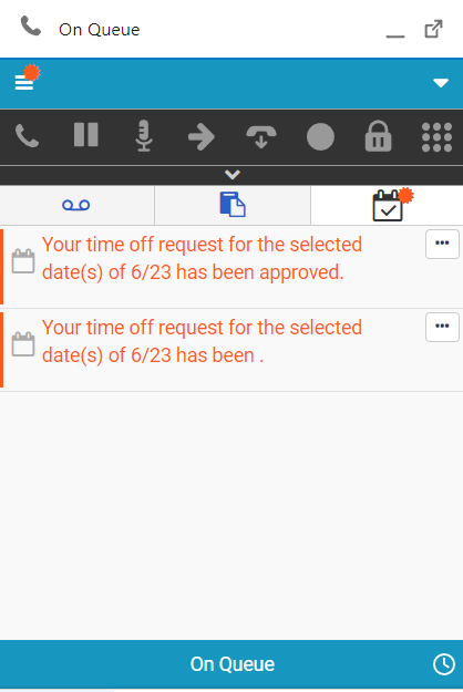 We recently implemented Time Off Requests in Genesys. When a time off request is submitted, the WebRTC does not show the status. At first we thought the message was truncated, but I would expect to see three dots at the end "..." instead of the one dot "." indicating the end of the sentence. This only seems to happen for submitted time off requests. Approved request messages appear as expected. Popping the window out to expand it does not change the message.