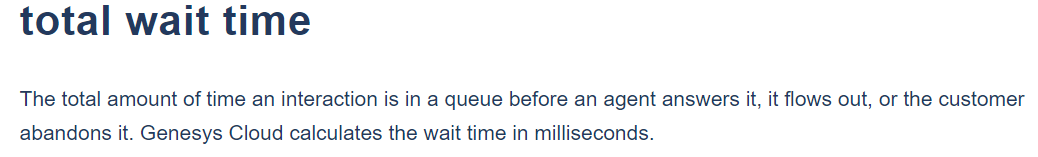 thanks for the answer, I already know this its just i need to get the Average wait which equals Total Wait Time / Interactions