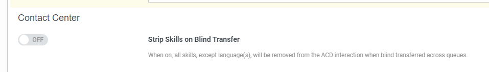 This will remove the skills on transfer if the agent uses Blind Transfer. Otherwise, the skills present when the transfer happens will be kept on the conversation.