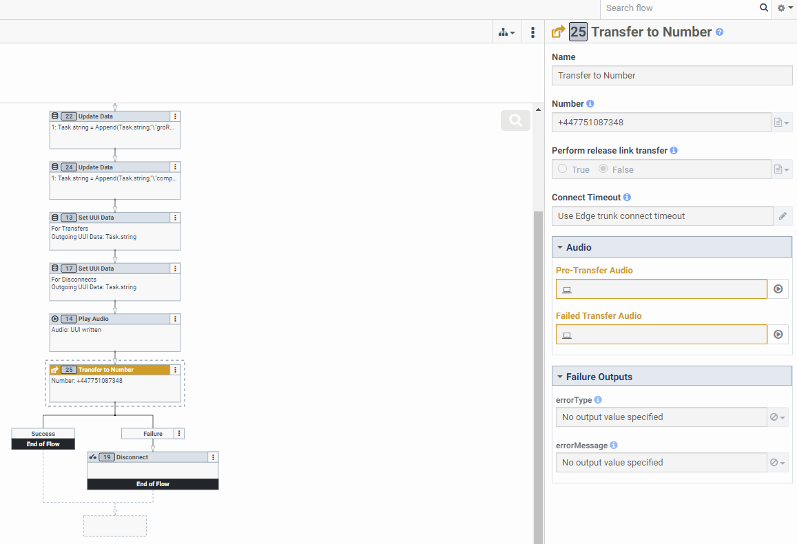 We are having an issue seeting up a simple transfer to number on a failure route within Archtiect when using Genesys Voice.