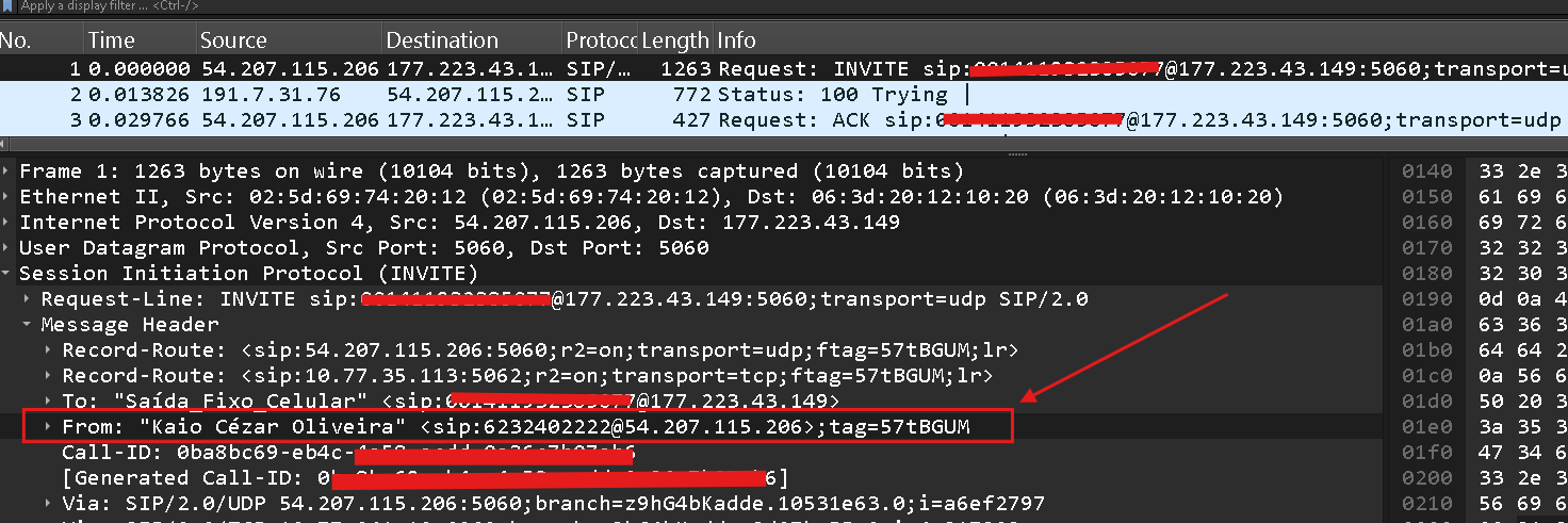 Look Caller ID in thunk is final "3006" number