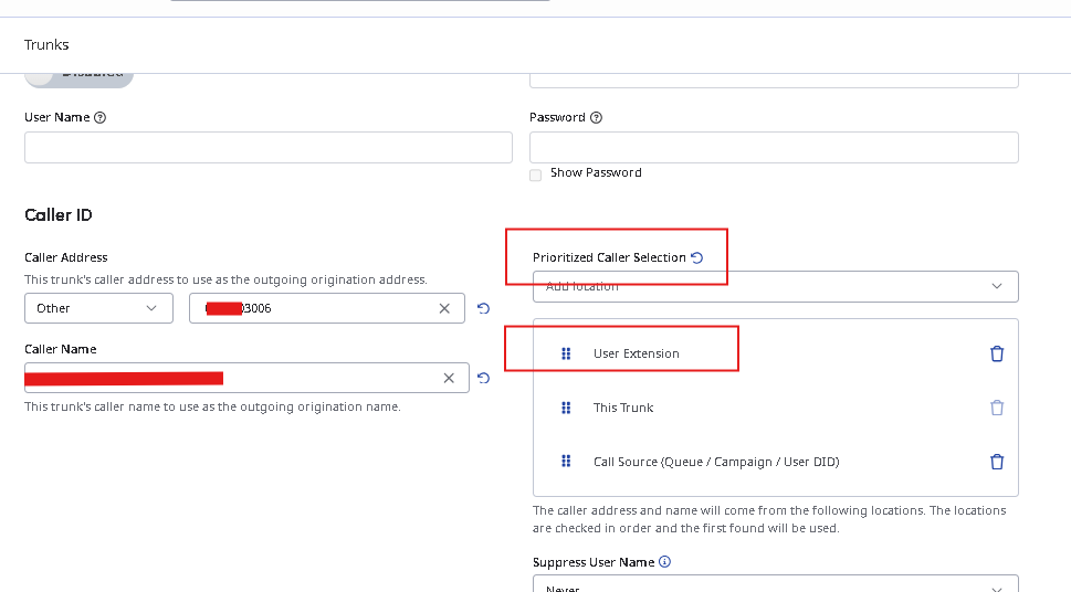 I adjusted the trunk configuration to prioritize "User Extension".