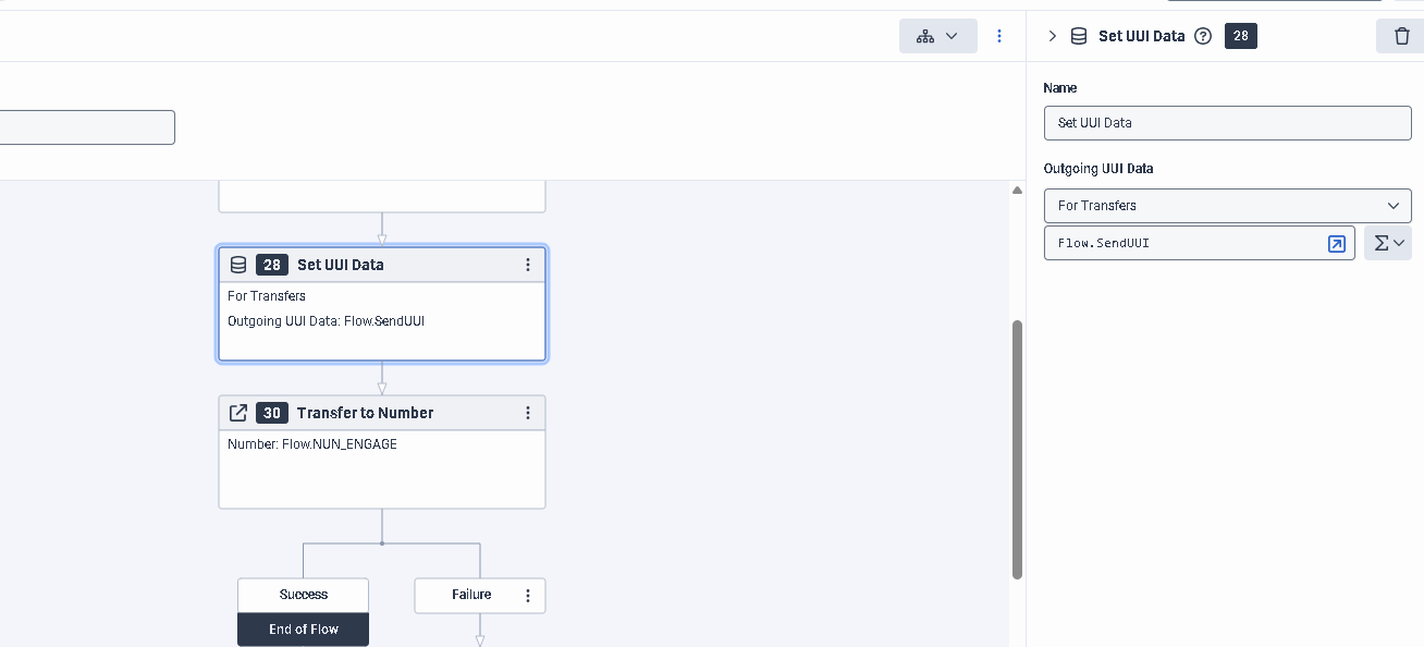 Finally, before the transfer block, you will add a "Set UUI Data"