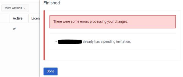 When I attempt to Send Invite, the interface says: "User already has a pending invitation".