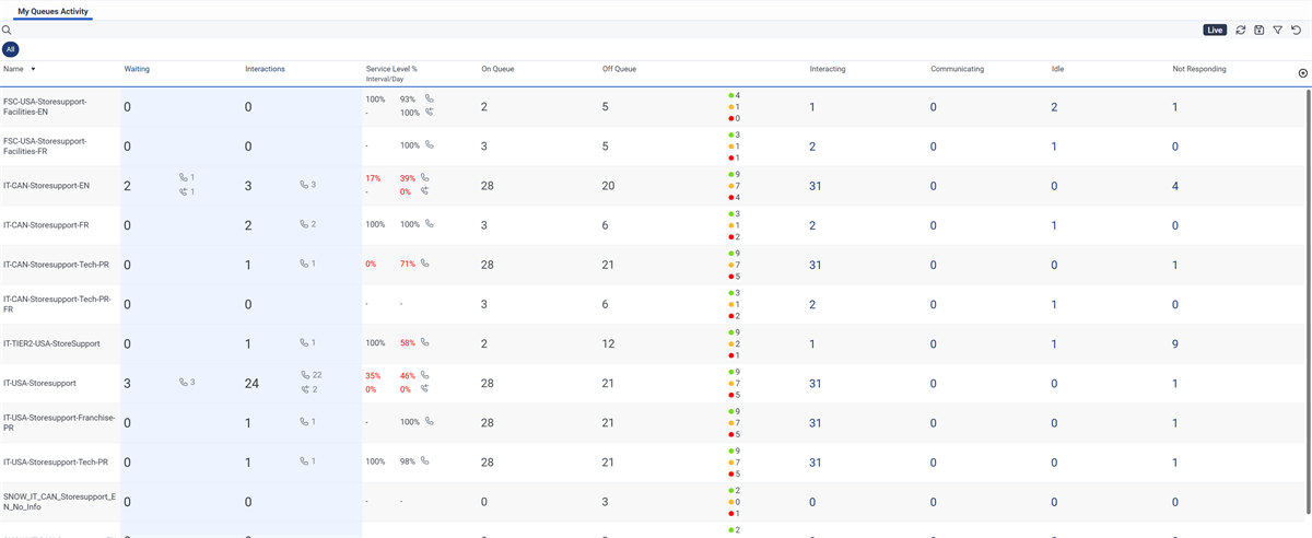 There the queue names on the left are clickable so you can get further [real-time/historical] details. That view does require a few more permissions than the My Queues Activity view though.