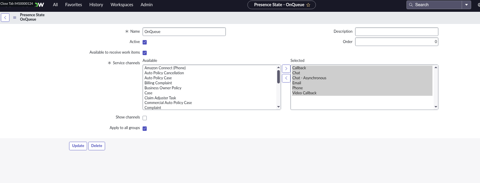 One "Available" status for handling voice calls that is mapped to Genesys On Queue, and the Service Channel is set only for Phone.
