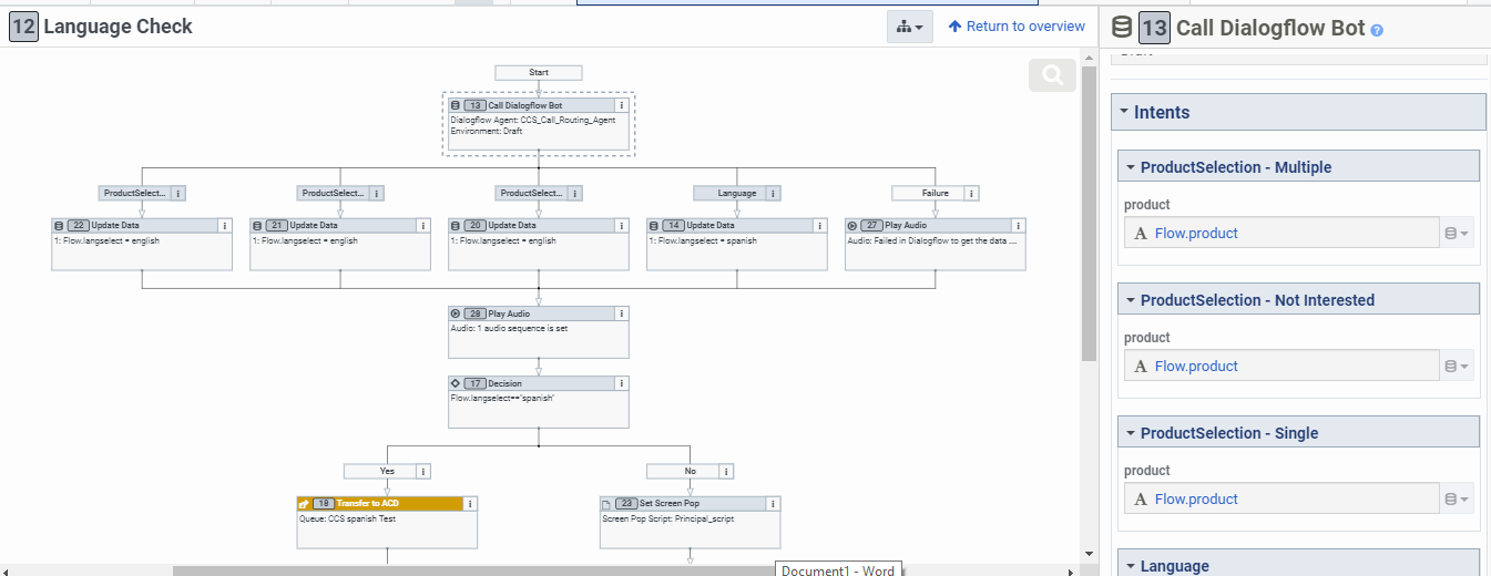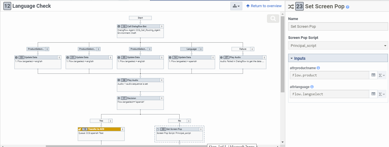 we are using a script in architect with two variables named as "attrProductname" and "attlrlanguage" and the values of these 2 variables we are getting it from bot and then set in in variable.