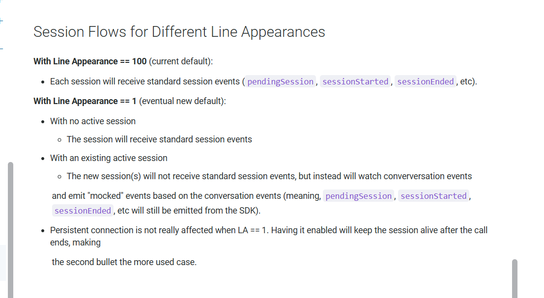 We have enabled Persistent WebRTC connection on our Genesys Cloud Instance and would like to update the Line Apperance of our WebRTC softphone to 1 as a best practice recommended in documentation: https://developer.genesys.cloud/devapps/webrtcsdk/softphone#session-flows-for-different-line-appearances