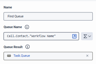 In the Find Queue block, in the Queue Name box type "Call.Contact." without the quotes then select the Queue option from the dropdown
