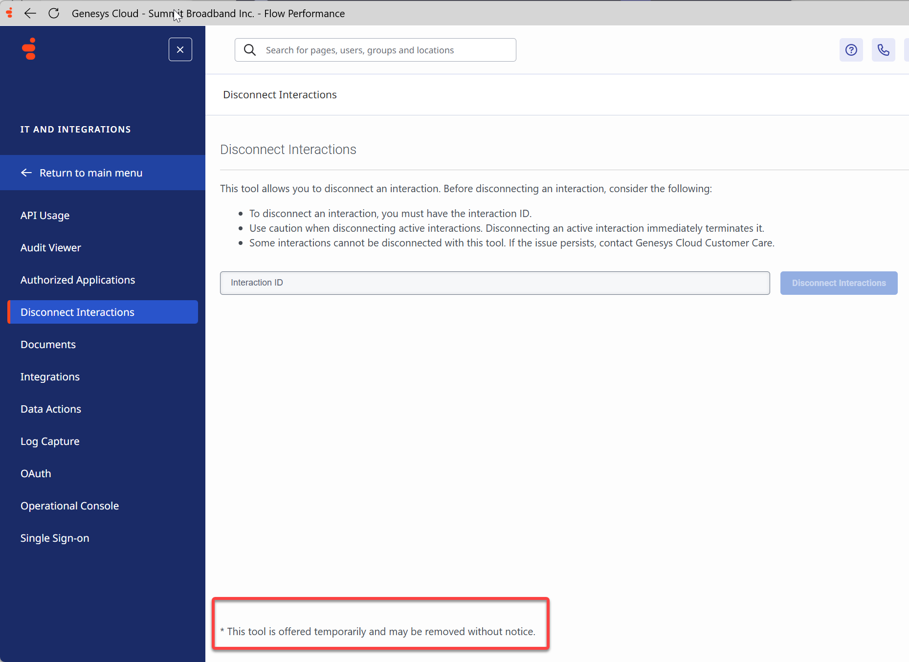 I see. So you are suggesting we use the global disconnect API which supports the 'Disconnect Interactions' page in the Genesys Cloud app.