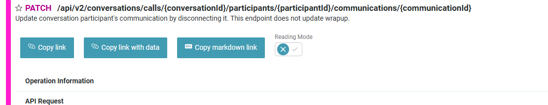 But when we try to call PATCH /v2/conversations/calls/{interactionId}/participants/{participantId}/communications/{communicationId} to disconnect a call type interaction, we get the following error: