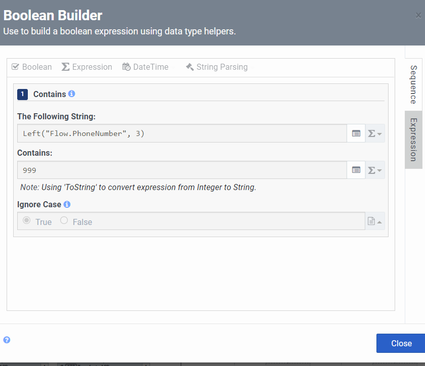 I am able to route chats using Flow.PhoneNumber == "1234567890", but I am not sure how I would route all phone numbers with area code 123 in the Flow.PhoneNumber
