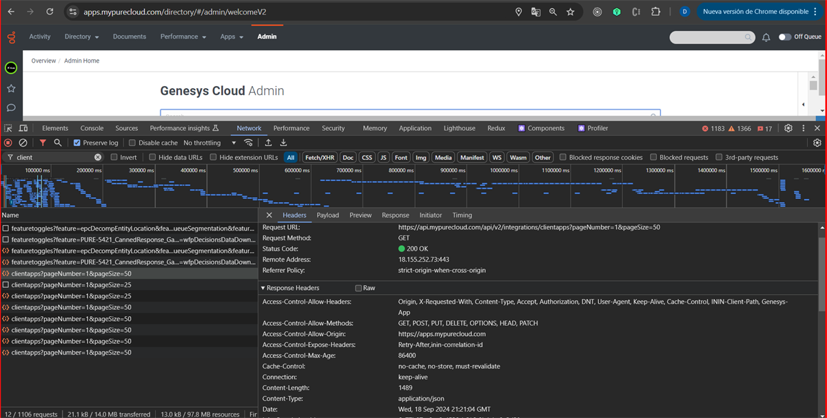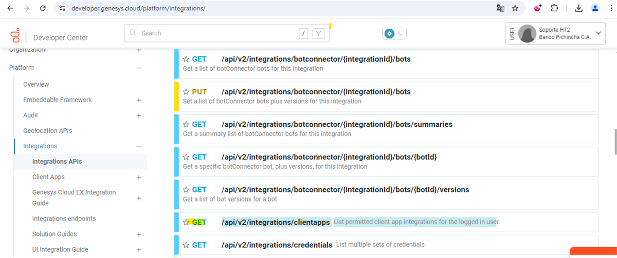 the service in the API "/api/v2/integrations/clientapps" tells me that GET type requests are allowed.