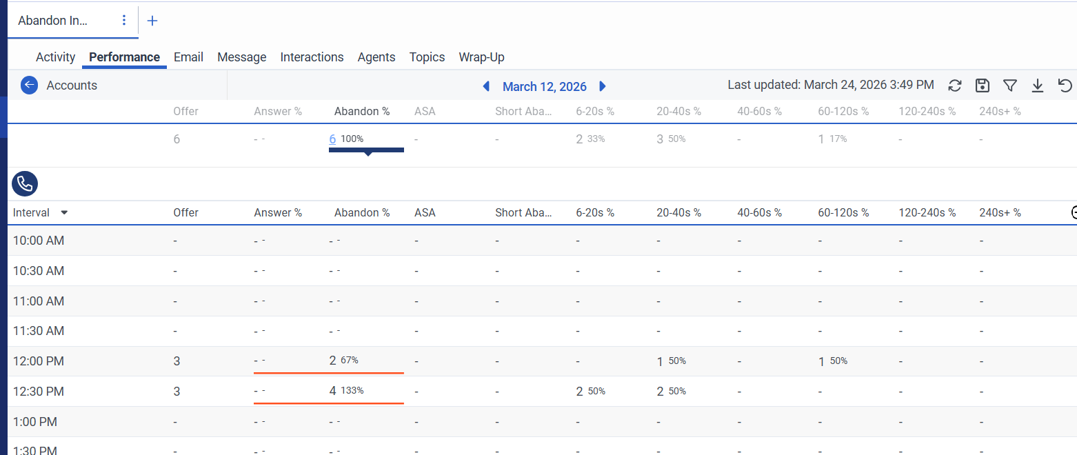 However, have had one of my Contact Centre leads reach out today that for reporting purposes they would like to be able to report on abandons within SLA and abandons outside of SLA. Other contact centres we have use the current configuration of intervals for short abandon so can't just globally amend the global settings.