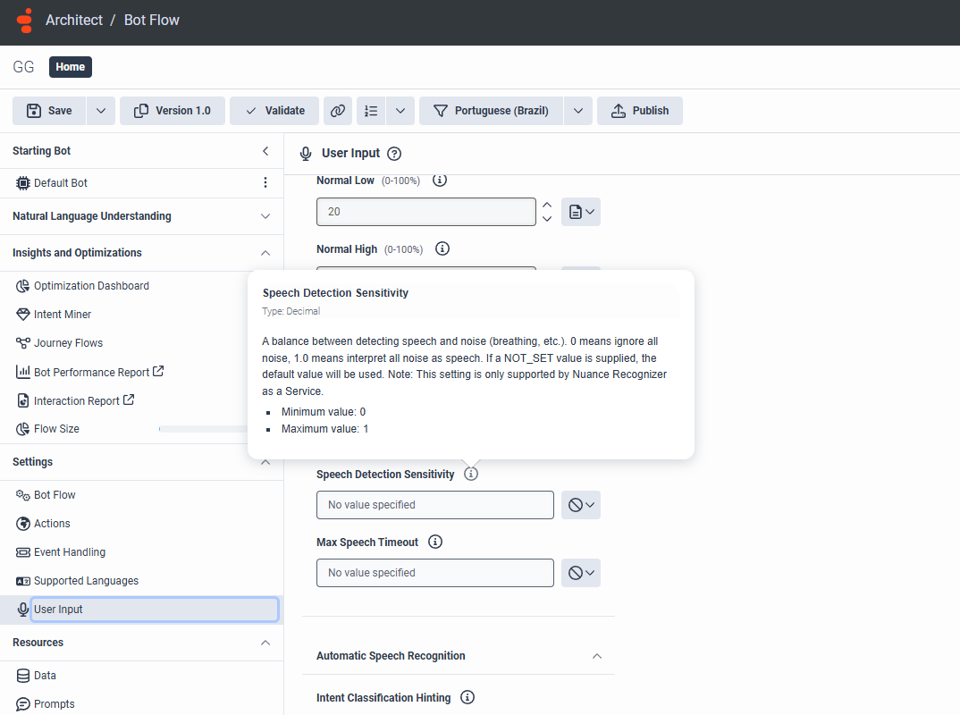 We are using an AWS bot within Genesys Cloud to collect user inputs. Since the input is processed in AWS, I'd like to check if there are any configurations on the Genesys side to optimize the voice input before it reaches the bot.