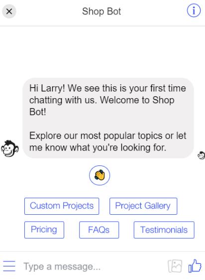 For example, when a customer starts the webchat, they will be able to see buttons/options at the start to let them know how to get started or after a question is asked by a bot (Amazon Lex Bot) similar to the image below.