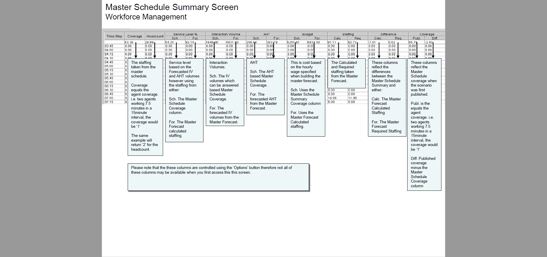 We are attempting to understand the difference in the various statistics in WFM, namely between Scheduled, Calculated and Forecasted. For example, calculated staffing vs scheduled staffing (I assume this is "Coverage"), what are the main differences?