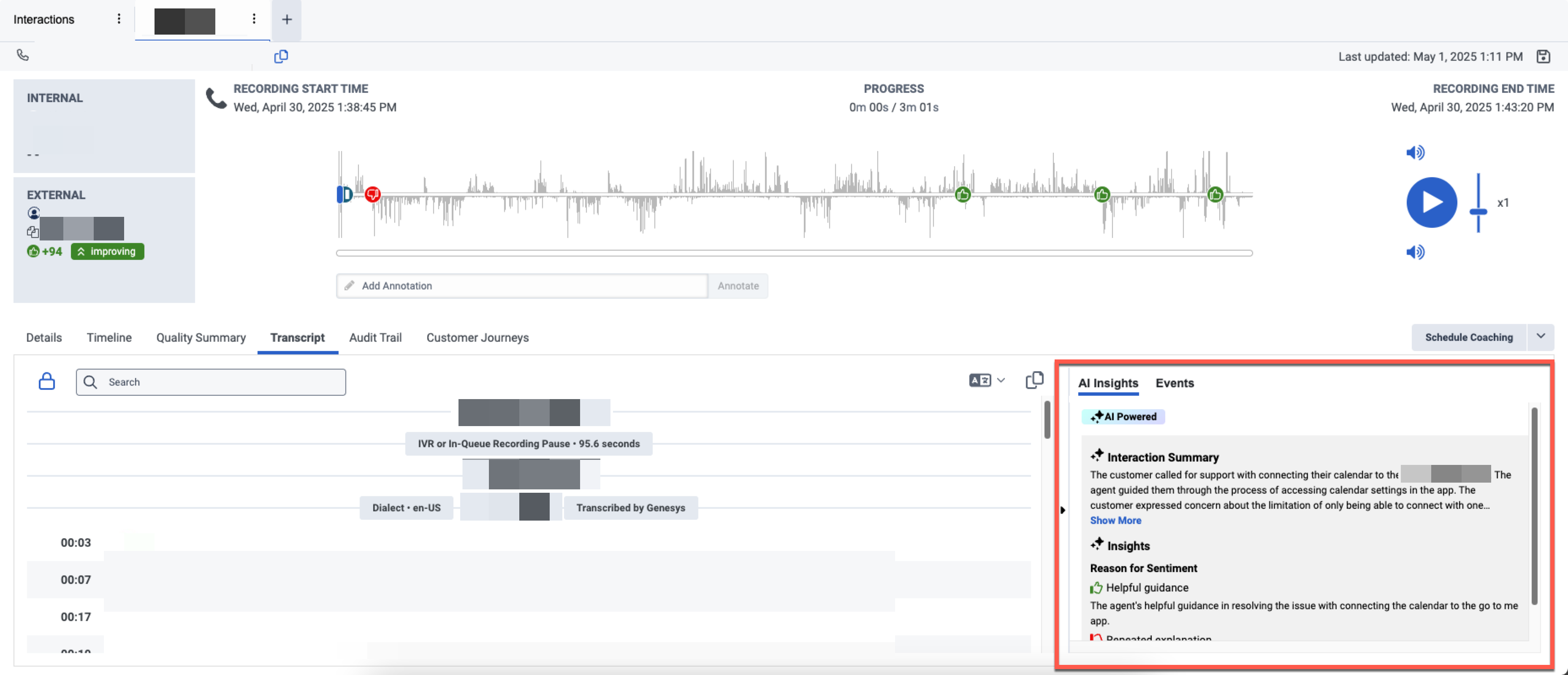 When Transcript AI Summarization is enabled on a Speech & Text Analytics Program, it populates the AI Insights section as seen in the attached screenshot. What API can I call to fetch this info outside the context of the Genesys UI iframe that powers this?