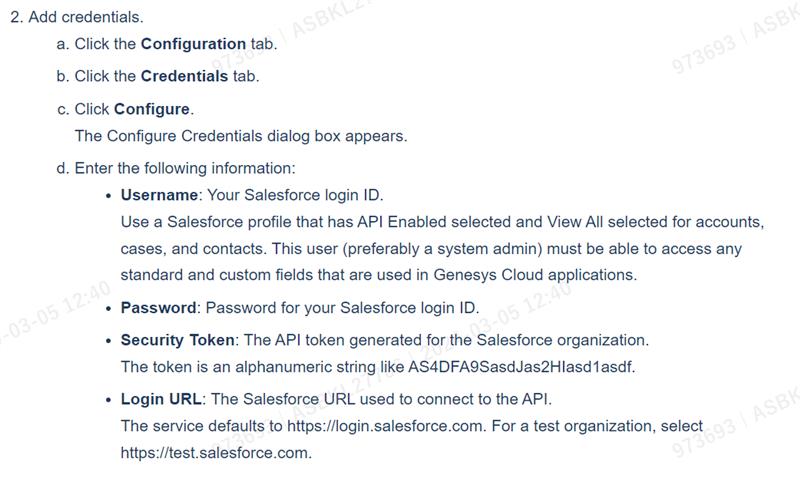 This information Genesys Cloud needs to consult and execute action in Salesforce for better integration in the systems.