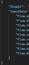"flowVersion.inputSchema.description": "Schema defining flow input parameters. Property names map to flow scoped variables marked as a flow input. If you do not supply a property value for an input variable, the variable value will be set to the initial value configured on it in the flow at flow startup.",