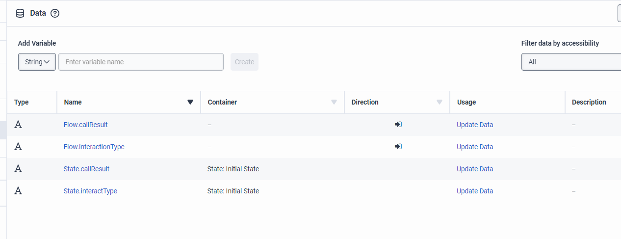 In Architect, ensure these flow variables are created and marked as input to flow: