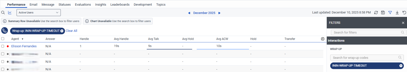 If you prefer to view this outside of Agent Performance, you can go to Interactions and filter by the wrap-up code. This will display all interactions that were ended with that wrap-up.
