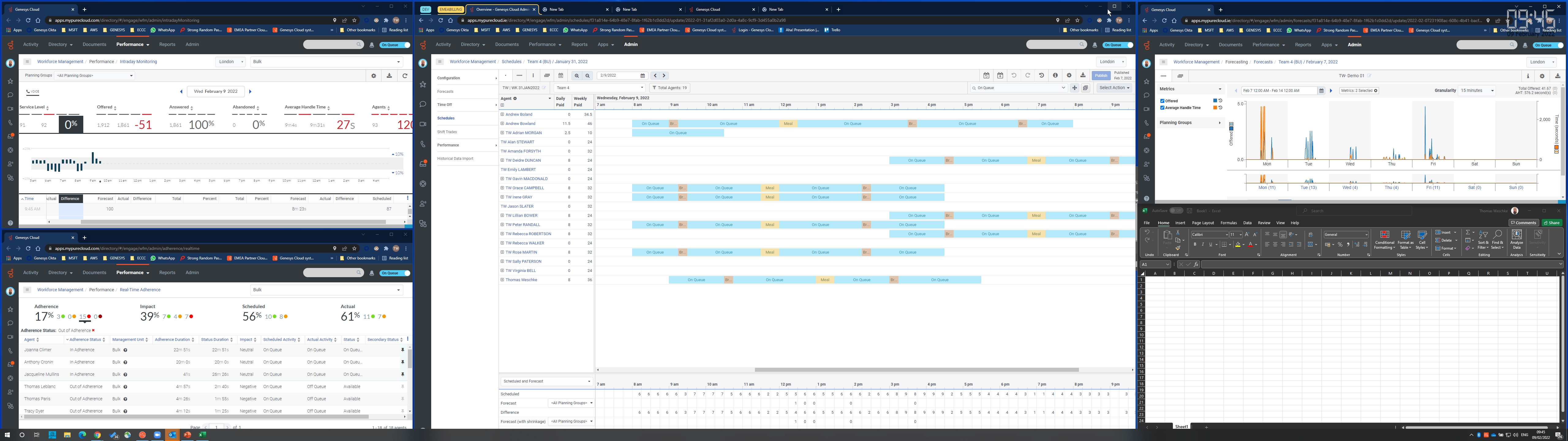 Did you know that you can open Genesys CX UI multiple times (even while it is a web UI)? Make sure to setup your multi-screen or big-screen to have all your required WFM/WEM tools visible and to hand.